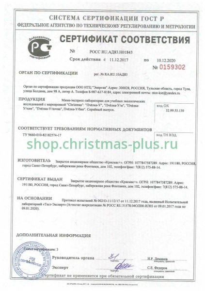 Тест-системы, входящие в состав мини-экспресс-лаборатории «Пчёлка-У/хим», имеют сертификат соответствия.