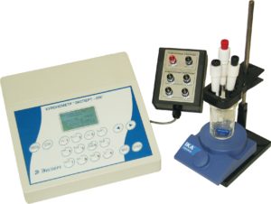 Комплект включает оборудование для автоматического титрования потенциометрическим методом (измерение ЭДС электродных систем анализатором «Эксперт-001») Представляет собой комплект «Титрион-1» (или «Титрион-1А»), укомплектованный электродными системами.