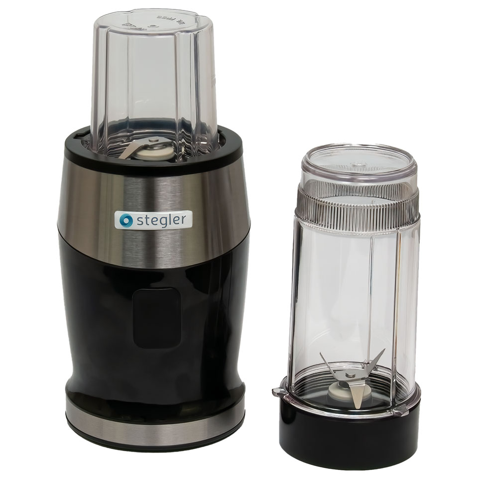 Мельница снабжена двумя сменными стаканами: на 200 и 400 мл и двумя крышками с одинарным и двойным ножом. Одинарный нож предназначен для размола сухих образцов. Двойной крестовидный нож  используется для влажных или полужидких образцов.