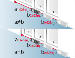 Два различных расстояния (a и b) могут быть введены в инструмент и затем используются для отметки определенных длин при измерении. Дисплей показывает стрелку направления с текущей разбивкой расстояния. На расстоянии 0.1 м для следующей точки разбивки, инструмент дает слышимый сигнал.