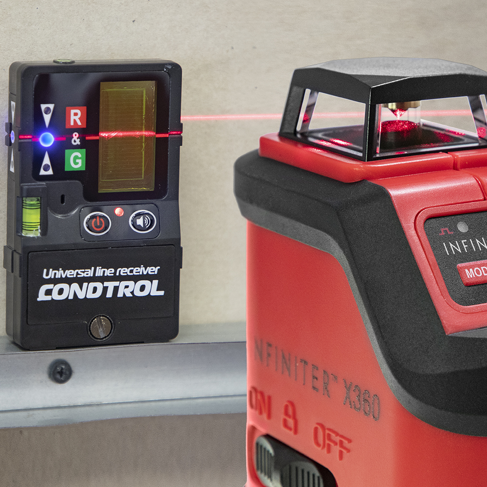 INFINITER X360 можно установить на штатив или крепление для лазерных нивелиров, оснащенных резьбой 1/4’’. Применение аксессуаров значительно упрощает работу с настройкой плоскостей, в особенности разметки под наклоном.
