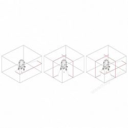При включении проецируется одна яркая горизонтальная плоскость с углом развертки 110°. Это позволяет быстро и точно разметить горизонтальные линии. Кроме того, с помощью функциональных клавиш на верхней панели устройства можно активировать одну или две вертикальные плоскости под углом 120°, что значительно расширяет возможности разметки.