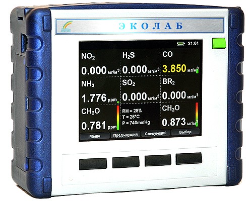 Портативный газоанализатор «ЭКОЛАБ» предназначен для автоматического измерения концентраций вредных веществ в атмосферном воздухе, в воздухе рабочей зоны и в промышленных выбросах, а также в технологических процессах в целях охраны окружающей среды, обеспечения безопасности труда и оптимизации технологических процессов.