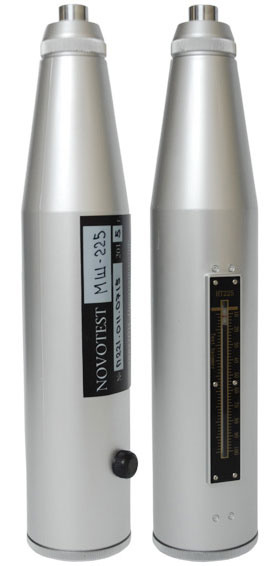 NOVOTEST МШ-225 — самый «мощный» и наиболее распространенный молоток Шмидта. Применяется для измерения прочности бетона толщиной 70-100мм и больше. Используется для измерения прочности массивных горных пород. Энергия удара — 2207Дж (2,207 Нм).