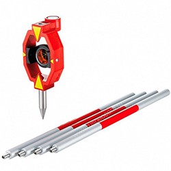 Мини-призма, установленная на пластиковом держателе с резьбовыми креплениями 1/4 дюйма. Включает круговой уровень, четырехсекционную веху GLS115 и наконечник, константа 0-призмы, максимальная IR дальность (в инфракрасном диапазоне) 2000 м.
