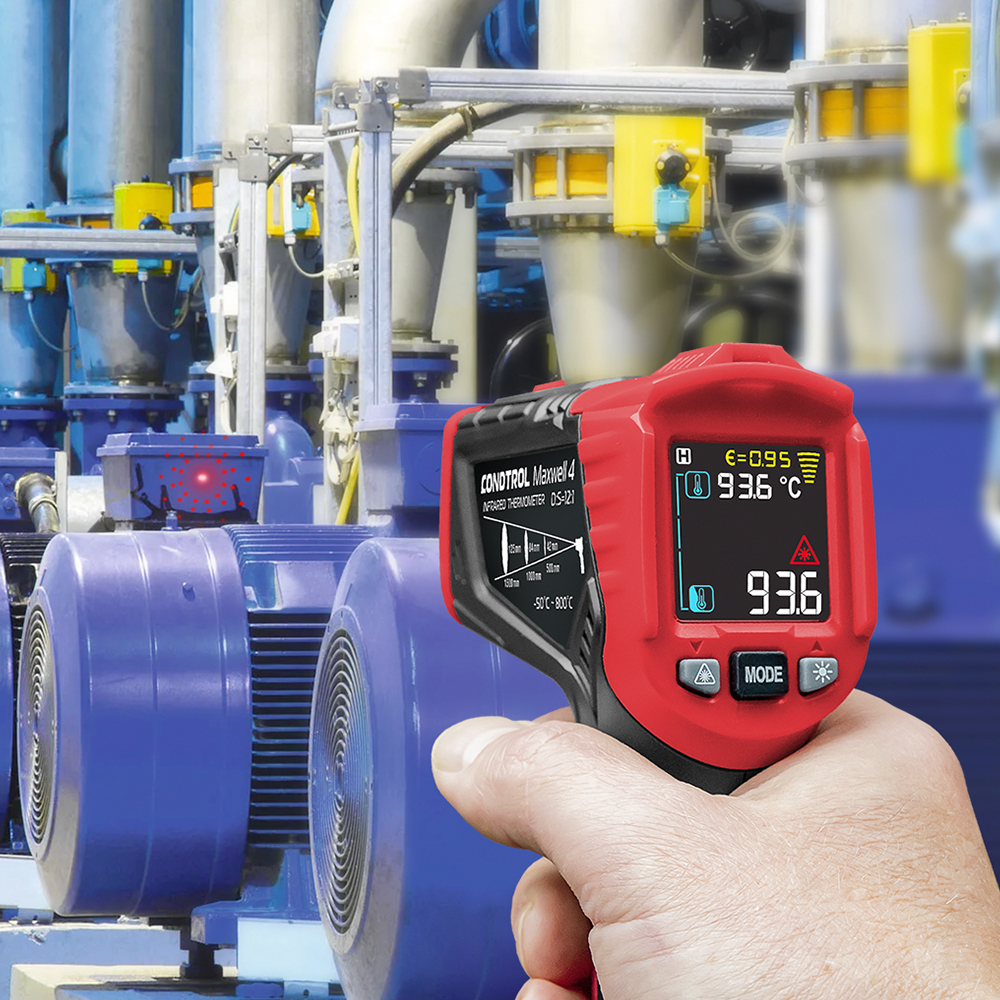 CONDTROL Maxwell 4 – портативный инфракрасный пирометр-гигрометр, позволяющий определить бесконтактным способом температуру поверхности объекта в диапазоне – 30 °С до 800°С. Отличительной особенностью является встроенный гигрометр, позволяющий измерять температуру среды. Пирометр CONDTROL Maxwell 4 сочетает в себе все функции, необходимые для контроля температуры в системах вентиляции, отопления, кондиционирования. Он способен определить перегрев различных механических и электрических устройств, диагностировать короткое замыкание. Точные измерения, интуитивный интерфейс и компактные размеры делают пирометр CONDTROL Maxwell 4 незаменимым помощником сотрудников жилищно-бытовой, строительной, ремонтной сфер деятельности.