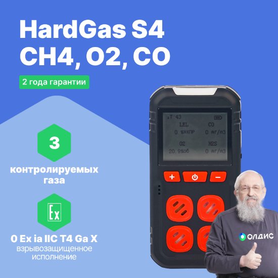 Портативный газоанализатор HardGas S4 (CH4, O2, CO)