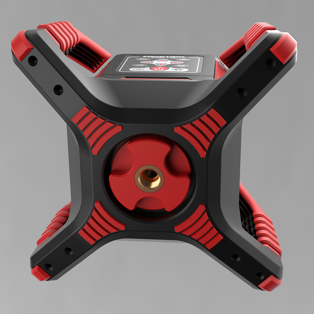 • Регулировка скорости вращения (0, 120, 300, 600 об./мин.). Чем выше скорость, тем легче приемникам обнаружить луч. Для наружных работ больше подходит высокая скорость. Более низкие скорости вращения делают луч идеальным для использования в помещении.