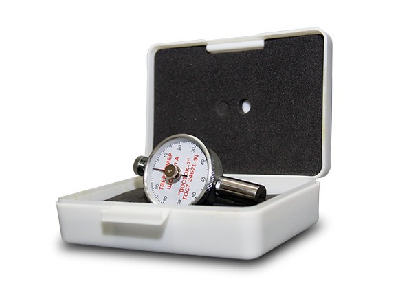 ТВР-А твердомер (дюрометр) Шора тип А с аналоговым индикатором предназначен для измерения твёрдости по шкале Шора тип А резины в соответствии с ГОСТ 263-75 и мягких пластмасс в соответствии с ГОСТ 24621-2015 (ISO 868-2003), в т.ч. мягких полиуретанов: эластомера, ПВХ, силикона, продуктов из натурального каучука, неопрена, смолы, полиэстера, кожи, полиграфических валков и т.п.
