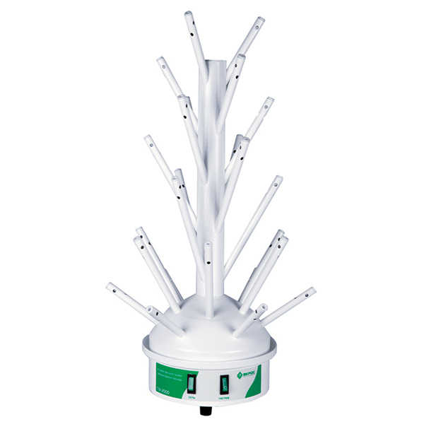 Быстрое просушивание лабораторной посуды в потоке теплого воздуха.