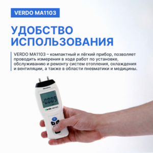Устройство способно работать с различными единицами измерения давления, включая Па, мбар, кПа, дюймы водяного столба и другие. Высокая точность измерений делает Verdo МА1101 универсальным инструментом, который находит применение в различных областях, где требуется высокая точность, таких как системы отопления, вентиляции, кондиционирования воздуха, а также в инженерных и промышленных системах.